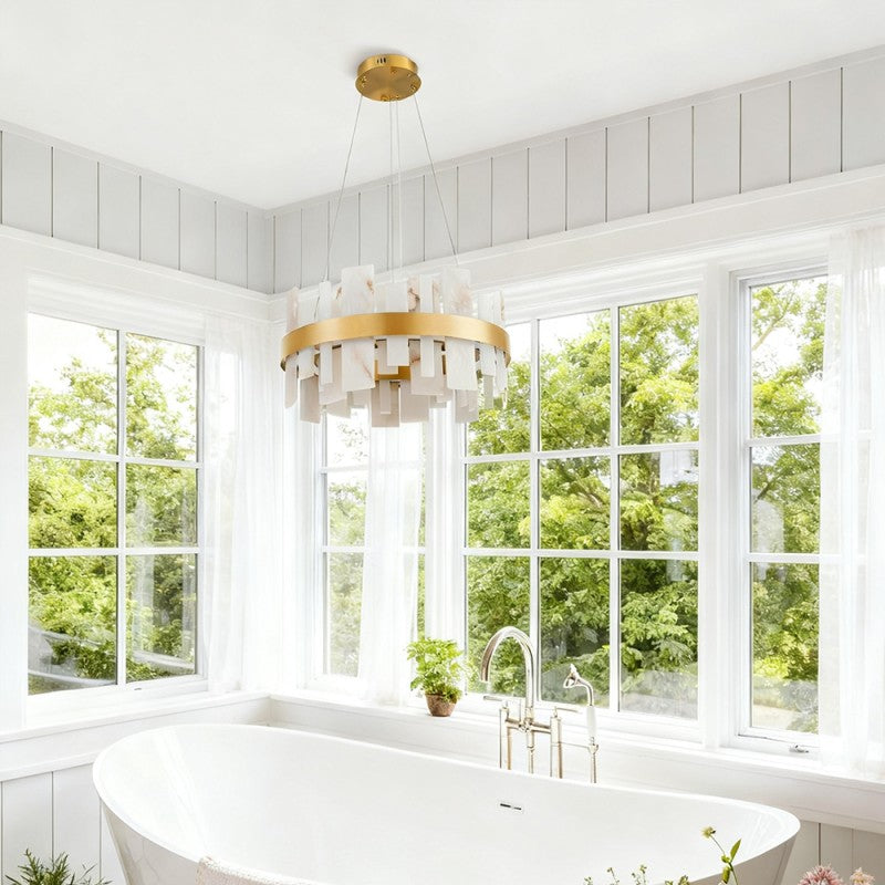 Modern Nocturne Alabaster Round Chandelier 24"