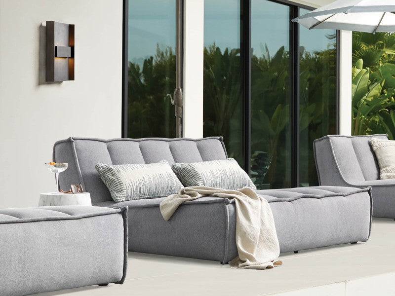 The perfect fixture for outdoor spaces, our Sanney Sconce’s rustic, industrial design is crafted from hand-worked aluminum with a Graphite finish complemented by subtle, long-lasting LEDs. |